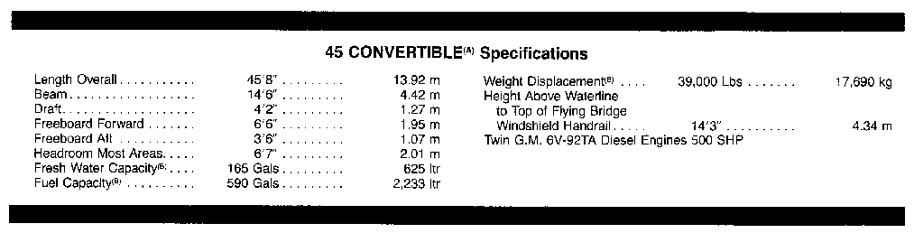 45 CONVERTIBLE Specifications